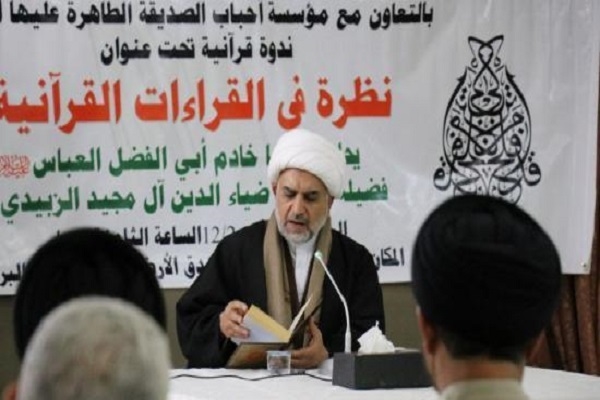 وأفادت وكالة الأنباء القرآنية الدولية(إکنا)، أقام مركز علوم القرآن وتفسيره وطبعه التابع لمعهد القرآن الكريم في العتبة العباسية المقدسة وبالتعاون مع مؤسسة أحباب الصديقة الطاهرة (عليها السلام) ندوة قرآنية مباركة تحت عنوان (نظرة في القراءات القرآنية ) إحتضنتها محافظة النجف الأشرف و حاضر فيها فضيلة الشيخ ضياء الدين آل مجيد الزبيدي مدير المركز حيث تطرق المحاضر إلى التعريف بالمصحف الشريف وعدد القراءات الموجودة وأي القراءات يعتمد عليها وما هو موقف أهل البيت (عليهم السلام) من تعدد القراءات ومن ثم استدل خلال محاضرته بجملة من المصادر المهمة التي حوت معلومات هامة بهذا الخصوص منها كتاب (البيان) للسيد الخوئي (رحمه الله).