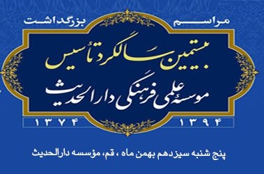 The 20th Anniversary of Dar al-Hadith Institute will be held on Thursday - 2016 03 March. It will be held at the Allama Majlesi’s Conference Hall at the Dar al-Hadith Scientific -Cultural Institute.