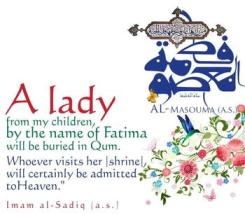 Mecca is God s sanctuary, Medina is Prophet Muhammad's (peace be upon him and his household), Kufa is Imam Ali s (A.S.), and Qom will be the sanctuary for one of my descendents; her name shall be Fatima. Whosoever visits her sanctuary will be rewarded a heavenly paradise.