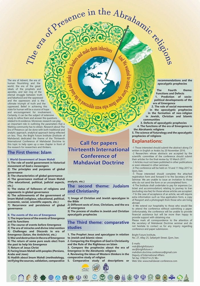 The Bright Future Institute (Institute of Mahdaviat) dedicated the theme of the Thirteenth International Conference of Mahdaviat Doctrine to The era of Presence in the Abrahamic religions to help open up a new chapter in front of the research for researchers and thinkers.