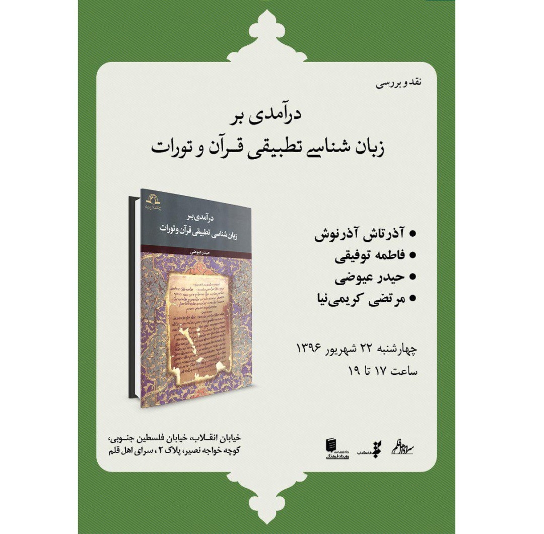 According to IBNA correspondent quoting from the public relations department of Iran’s Book House Institute (IBHI), the Persian book ‘An Introduction to Comparative Linguistics of the Qur'an and the Torah’ by Haidar Aivazi will be reviewed at the House of the Literati affiliated to IBHI with the author as well as experts Azartash Azarnoush, Fatemeh Tofiqi, and Morteza Kariminia in attendance.