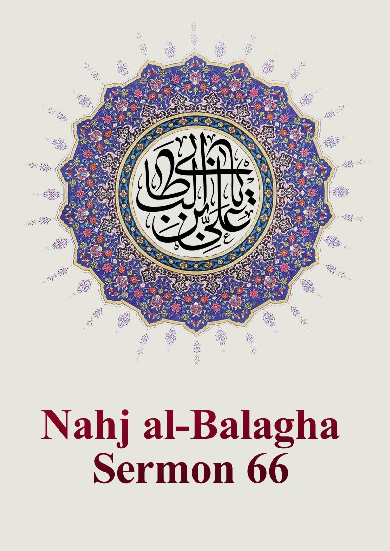 Alternative Sources for Sermon 66: Nasr, Siffin, see Ibn Abi al-Hadid, I, 479; Ibn Qutaybah, ‘Uyun, I, 110, 133; al-Jahiz, al-Bayan, II, 24; al-Bayhaqi, al-Mahasin, 45; al-Tabari, Basharah, 172; al-Quda’i, Dustur, 124; Ibn ‘Asakir, Ta'rikh, XII, 182; al-Mas’udi, Muruj, II, 380; Furat, Tafsir al-Qur'an.