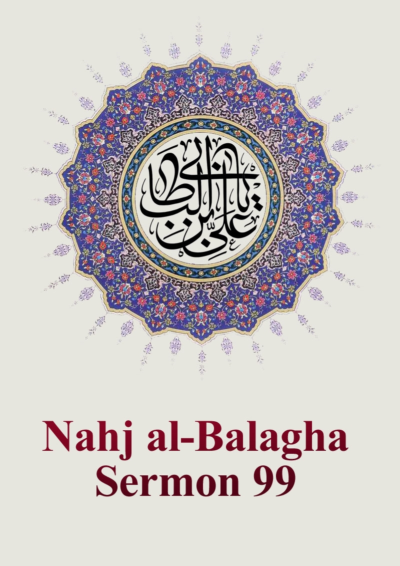 Alternative Sources for Sermon 99: Al-Saduq, Ma’ani, 184; al-Saduq, Man la yahduruh, I, 270; al-Tusi, al-'Amali, II, 50; al-Tabarsi, Mishkat, 107.