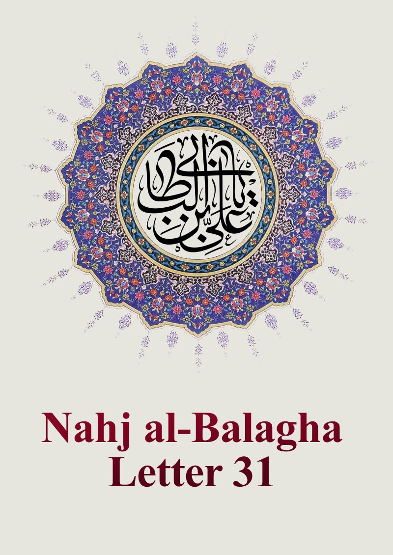 1. Ibn Maytham al-Bahrani (vol.5, p.2) has quoted Abu Ja`far ibn Babawayh al-Qummi to have stated that Amir al-mu'minin wrote this piece of advice in the name of his son Muhammad ibn al-Hanaffiyyah, while al-`Allamah as-Sayyid ar-Radi has written that its addressee is Imam al-Hasan (p.b.u.h.). But the fact is that Amir al-mu' minin wrote another piece of advice to Ibn al-Hanafiyyab in brief which included a part of the same which he wrote to al-Imam al-Hasan. (Kashf al-mahajjah, Ibn Tawus, pp.157- 159; al-Bihar, vol.77, pp.196-198) In any case, whether the addressee is al-Imam al-Hasan or Muhammad ibn al-Hanafiyyah, this manifesto of the Imam is a lesson of guidance to action in which the ways of success and achievement can be opened and the straying caravans of mankind can tread the path of guidance. It contains principles of correcting the matters of this world and the next, creating the sense of morality and improving economic and social matters whose like cannot be produced by the epitomes of scholars and philosophers. Its truthful preachings are a strong incentive for recalling to humanity the lessons it has forgotten, reviving the dead lines of social dealings and raising the standards of morality.