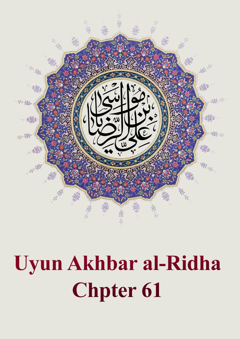 61-1 Al-Hakim Abu Ali Al-Husayn ibn Ahmad al-Bayhaqi narrated that Muhammad ibn Yahya al-Sowli quoted on the authority of Ubaydillah ibn Abdullah and Muhammad ibn Musa ibn Nasr al-Razi, on the authority of his father and Al-Husayn ibn Umar al-Akhbari, on the authority of Ali ibn Al-Husayn - the author of Bogha al-Kabeer - that in the last days of his life, Ar-Ridha’ (AS) got a fever.