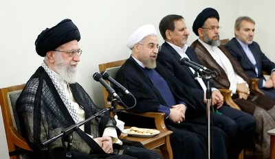 حضرت آیتالله خامنهای رهبر انقلاب اسلامی صبح امروز (چهارشنبه) در دیدار رئیسجمهور و اعضای هیأت دولت، ایجاد آرامش روحی و روانی در جامعه، کنترل تورم، تثبیت قیمت ارز و اجرای طرح نظام سلامت را از اقدامات با ارزش و خوب دولت یازدهم در یکسال گذشته برشمردند و همه دولتمردان را به حفظ و تقویت جهتگیری و روحیهی انقلابی، تکیه بر ظرفیتها وتولید داخلی، اجرای دقیق سیاستهایاقتصاد مقاومتی، توجه ویژه به بخش کشاورزی و صنایع تبدیلی در روستاها، جدی گرفتن ادامهی رشد علمی و تقویت شرکتهای دانشبنیان، موضعگیری صریح در قبال مسائل منطقه و جهانی بهویژه دخالتهای آمریکا، حفظ انسجام درونی دولت، رعایت خطوط قرمز و فاصلهگذاریها بهویژه در موضوعفتنهی سال ۸۸و سعهی صدر و آرامش در قبال انتقادهای منصفانه، توصیه کردند.