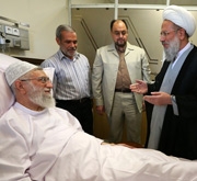 آيت الله ری شهری با حضور در بيمارستان محل بستري رهبر معظم انقلاب از حضرت آيت الله خامنهاي عيادت و سلامتي و بهبودی کامل ايشان را از درگاه خداوند متعال مسألت کرد.