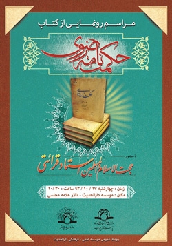 مراسم رونمایی از مجموعه ۴ جلدی «حکمت نامه رضوی» چهارشنبه ۱۷ دی با حضور آیت الله ری شهری و حجت الاسلام و المسلمین قرائتی برگزار می گردد.