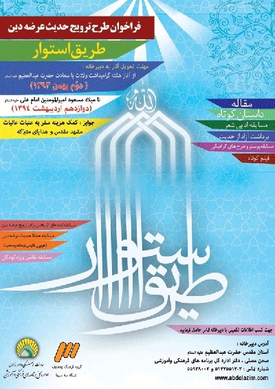 موضوع : متناسب با موضوع مندرج در فراخوان . شرایط شرکت : حفظ نمودن حدیث . (حدیث عرضه دین در صفحه ۸ ضمیمه می باشد)