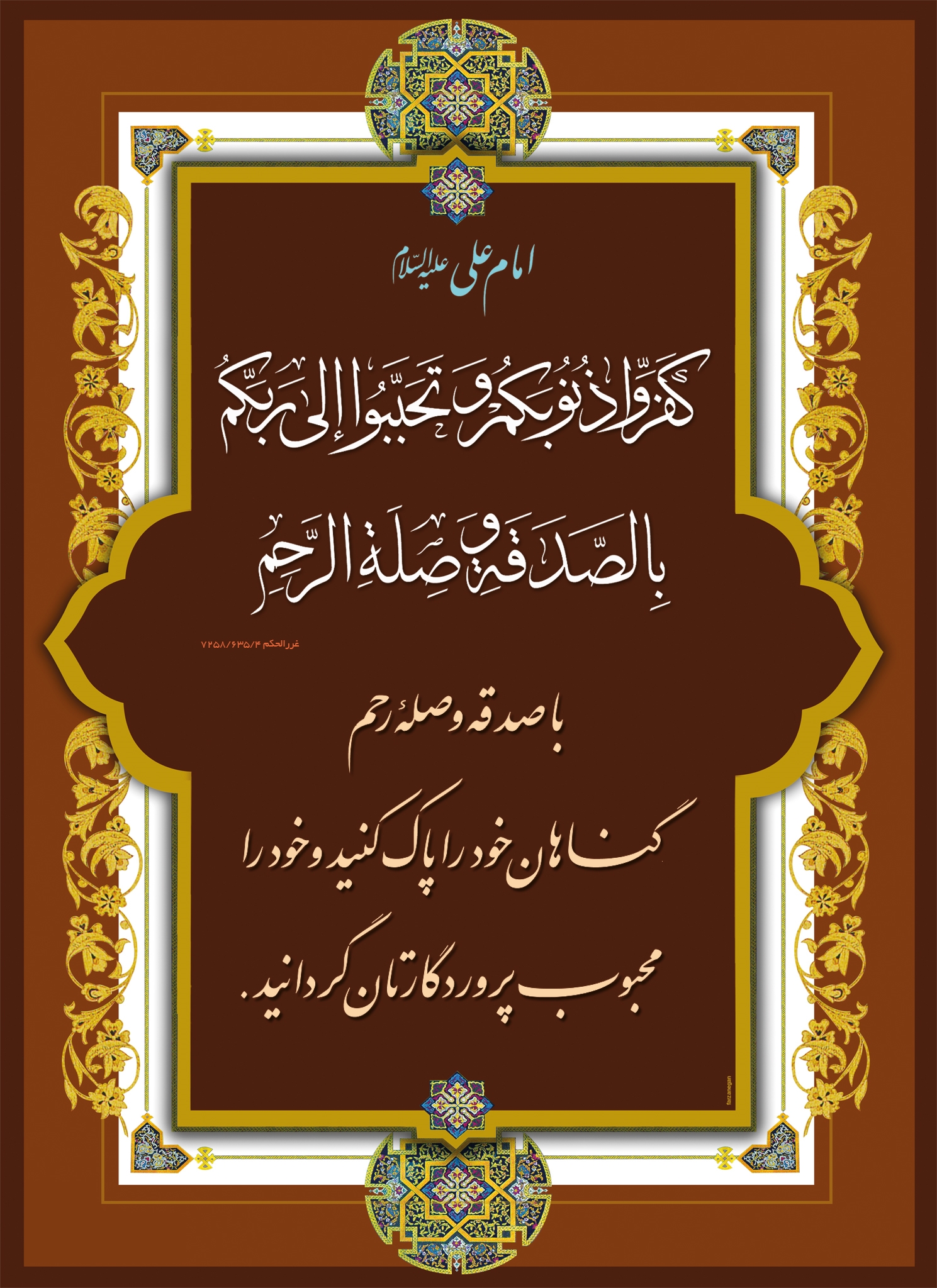كَفِّروا ذُنوبَكُم و تَحَبَّبوا إلى رَبِّكُم بِالصَّدَقَةِ و صِلَةِ الرَّحِمِ؛