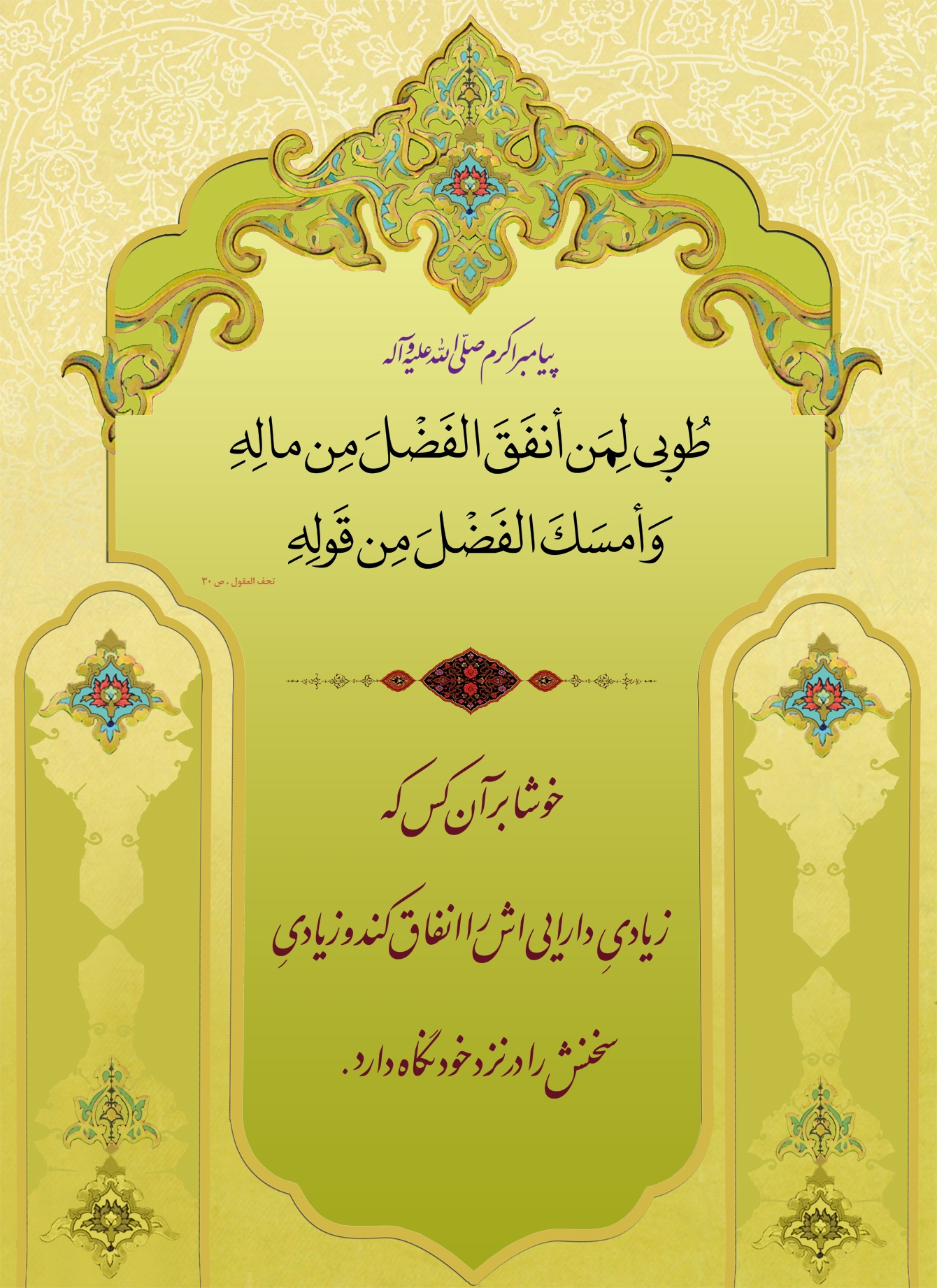 خوشا بر آن کس که زیادی داراییاش را انفاق کند و زیادی سخنش را در نزد خود نگاه دارد.