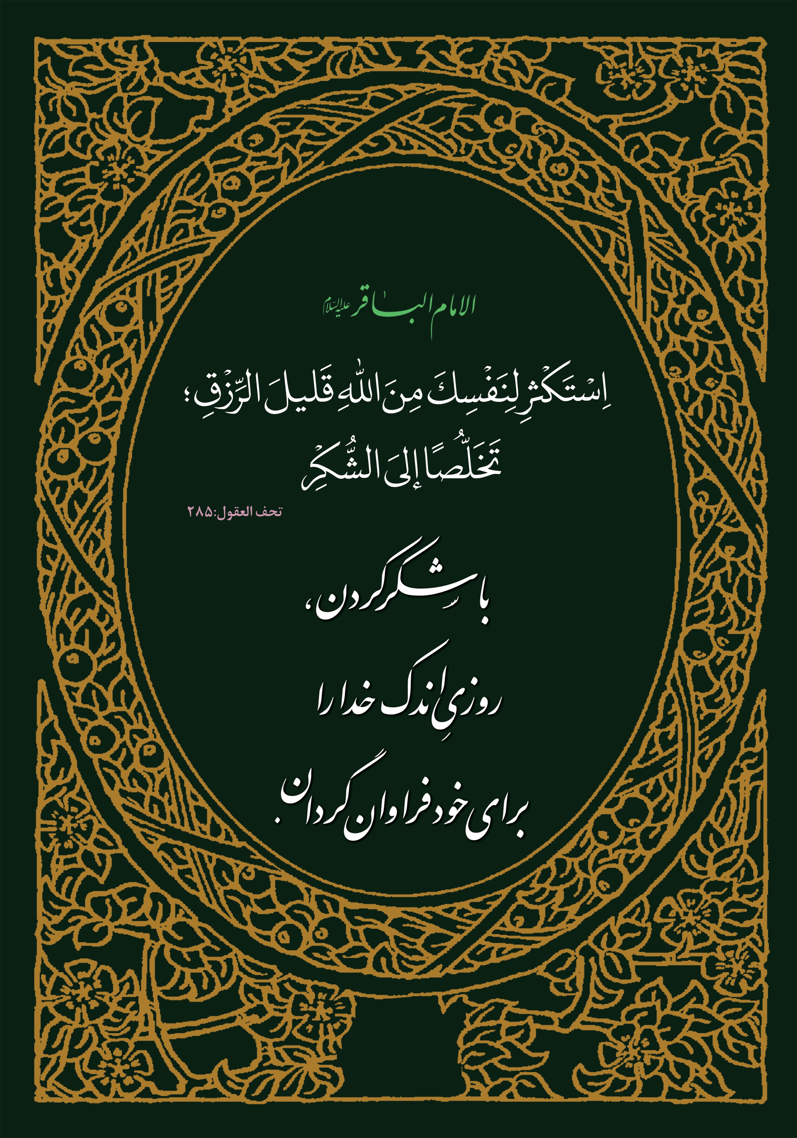 اِستَكثِر لِنَفسِكَ مِنَ اللّهِ قَليلَ الرِّزقِ؛ تَخَلُّصا إلَى الشُّكرِ؛