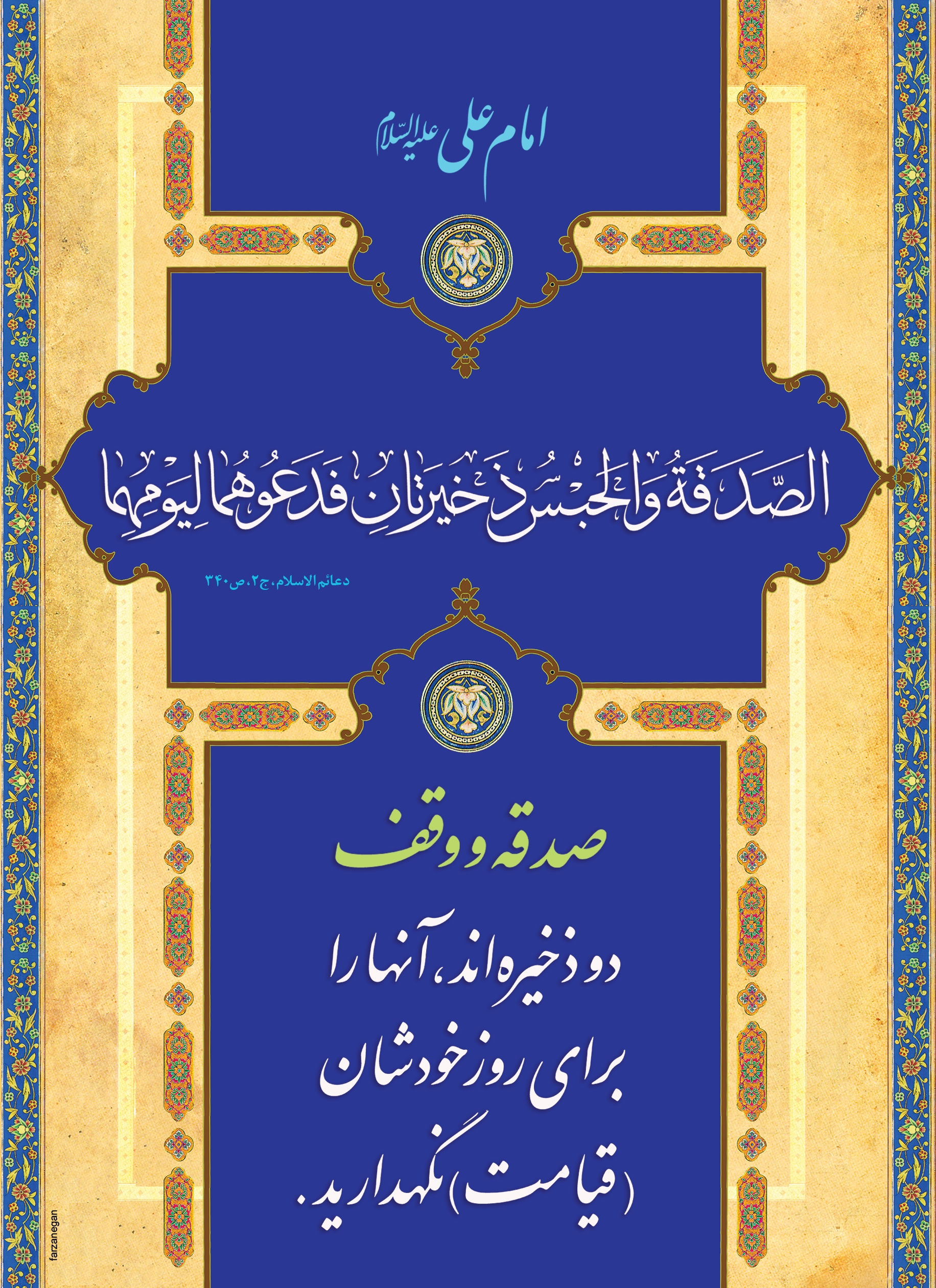 صدقه و وقف دو ذخيره اند، آنها را براى روز خودشان (قيامت) نگهدارید.