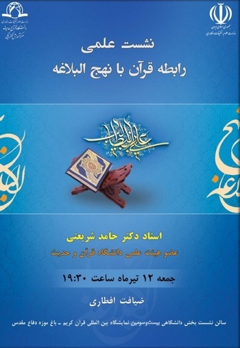 به همت مرکز آموزش الکترونیکی دانشگاه قرآن و حدیث، نشست علمی رابطه قرآن با نهج البلاغه در نمایشگاه قرآن برگزار می گردد.