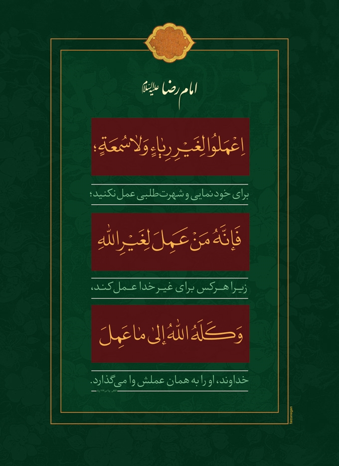 اعمَلُوا لِغَيرِ رِيَاءٍ ولَا سُمعَةٍ؛ فَإِنَّهُ مَن عَمِلَ لِغَيرِ اللَّهِ وَكَلَهُ اللهُ إِلى مَا عَمِلَ؛