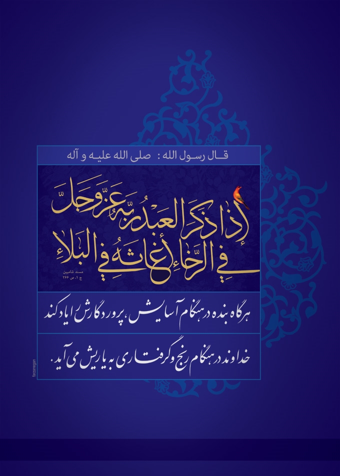 هر گاه بنده در هنگام آسايش، پروردگار بلندْ مرتبه اش را ياد كند، خداوند نيز در هنگام رنج و گرفتارى، به يارى اش مى آيد.