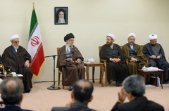 حضرت آیت الله خامنهای در این دیدار با اشاره به اهمیت موضوع هنر و اظهار خرسندی از ورود حوزه علمیه به مقوله فقه هنر، گفتند: هنر، امری مبارک و انسانی، زاییدهی تخیل قوی و ذوق وافی و جزء زندگی انسان است و در میان فقها و در حوزههای علمیه نیز همواره هنرمندان برجستهای در شاخه شعر و ادب وجود داشتهاند.