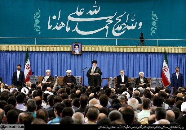 ۱) در ابتداى این دیدار -که بهمناسبت عید سعید فطر برگزار شد- حجّتالاسلام والمسلمین حسن روحانى (رئیس جمهور) مطالبى بیان کرد.