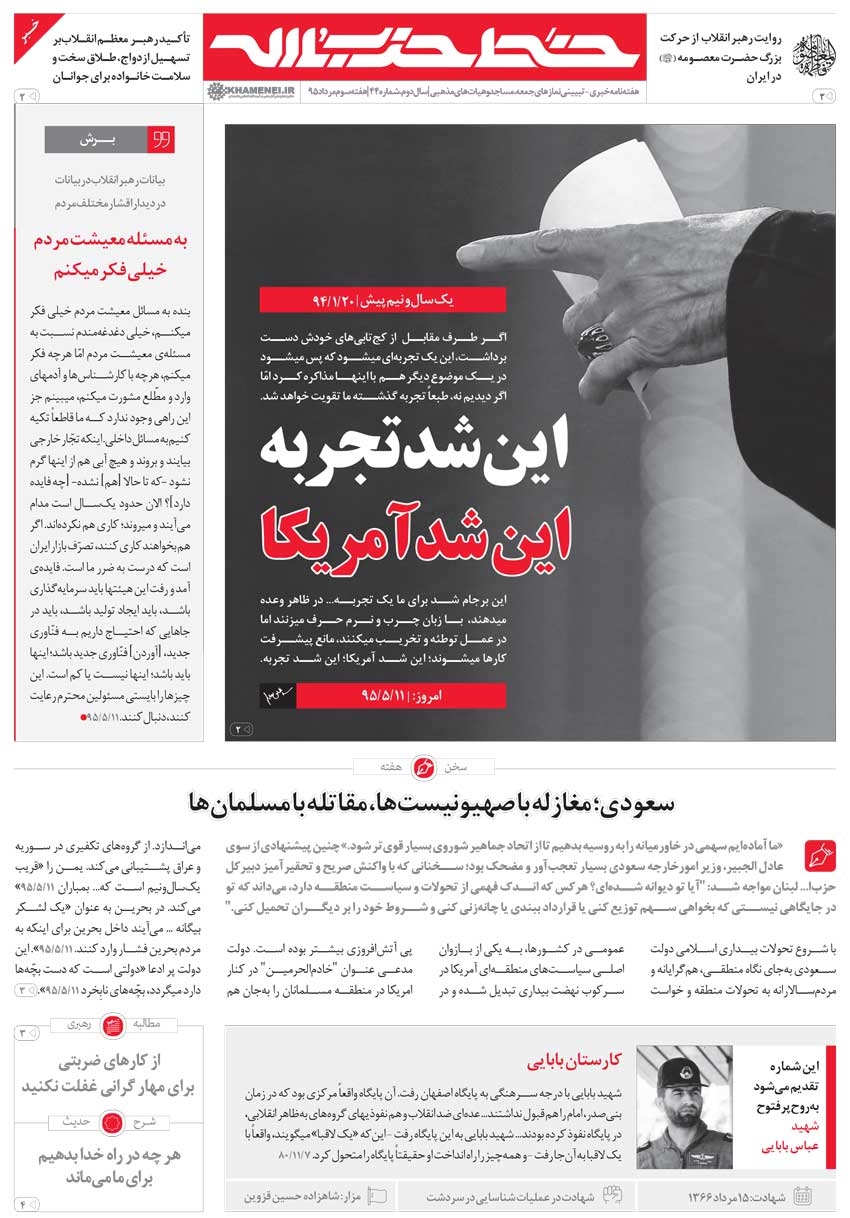 چهل و چهارمین شماره هفتهنامه خبری-تبیینی خط حزبالله با گزارشی از تجربه مذاکره با آمریکا در موضوع هستهای با عنوان « این شد تجربه، این شد آمریکا» منتشر شد.