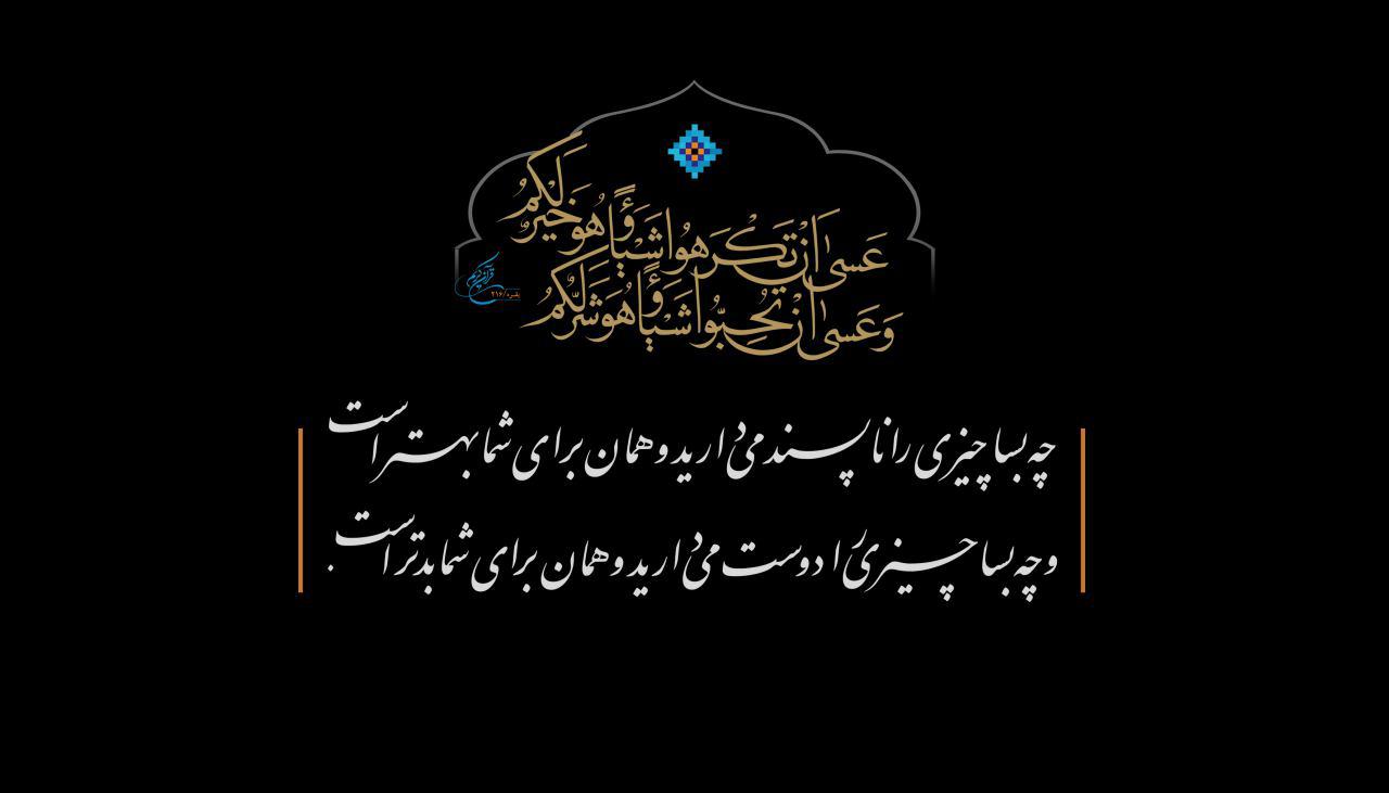 چه بسا چیزی را ناپسند می دارید و همان برای شما بهتر است، و چه بسا چیزی را دوست می دارید و همان برای شما بدتر است.