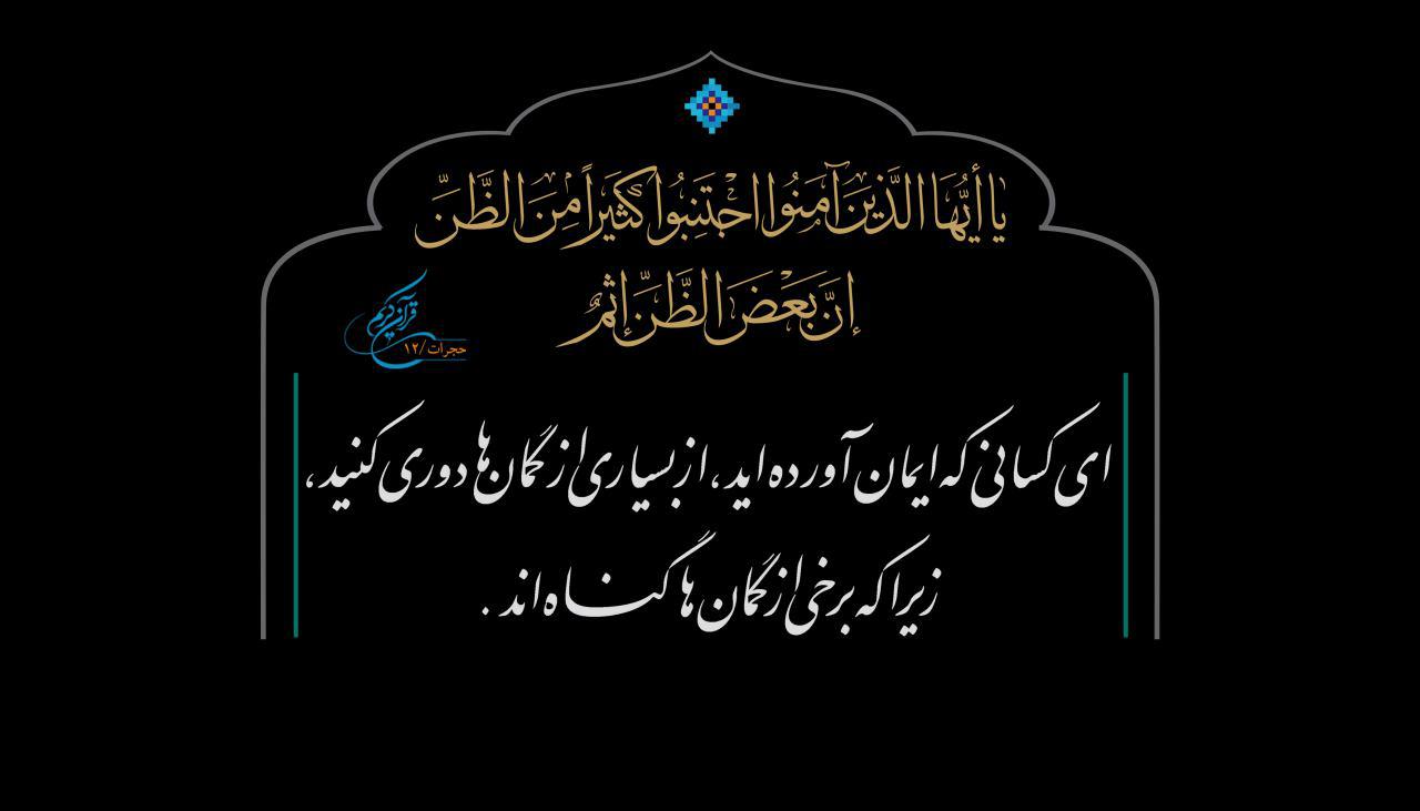 يا أَيُّهَا الَّذينَ آمَنُوا اجْتَنِبُوا كَثيراً مِنَ الظَّنِّ إِنَّ بَعْضَ الظَّنِّ إِثْمٌ؛