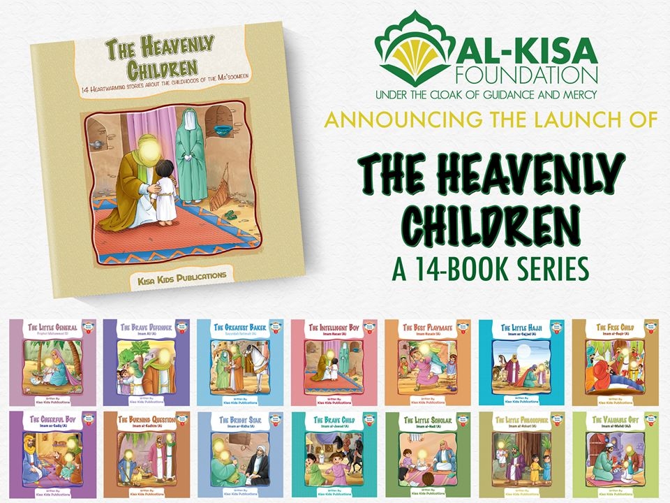 انتشارات «کودکان کساء» در سان خوزه کالیفرنیا اقدام به توزیع جدیدترین سری کتب انگلیسی زبان با عنوان «کودکان آسمانی» کرده که دوران کودکی ائمه معصوم را به نگارش درآورده است.