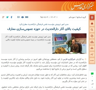 کیفیت بالای آثار دارالحدیث در حوزه عمومی‌سازی معارف