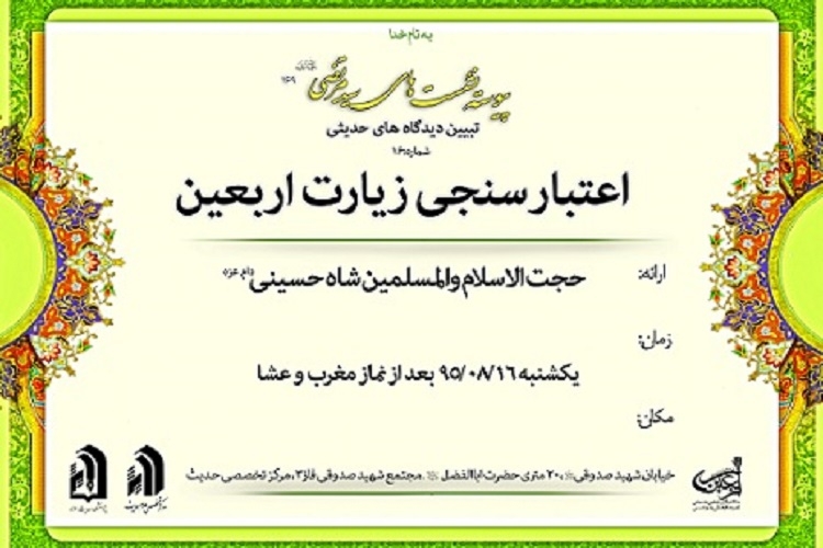 نشست علمی اعتبارسنجی زیارت اربعین، در مرکز تخصصی حدیث حوزه به مناسبت اربعین سید و سالار شهیدان برگزار خواهد شد.
