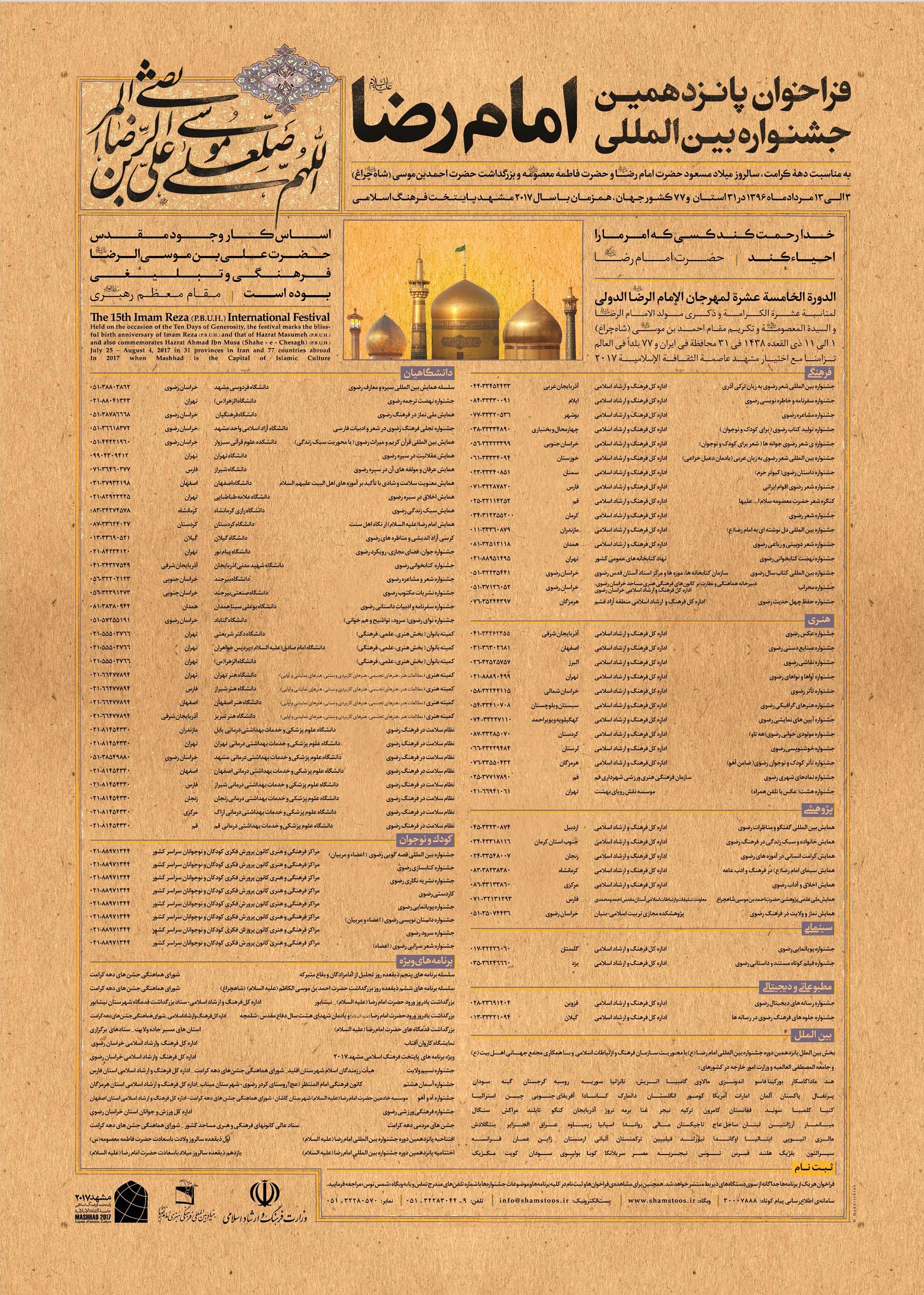 همزمان با شب میلاد فرخنده پدر گرامی حضرت ثامنالحجج، فراخوان پانزدهمین جشنواره بینالمللی فرهنگی هنری امام رضا(ع)، در سه بخش استانی، ملی و بین المللی منتشر شد.