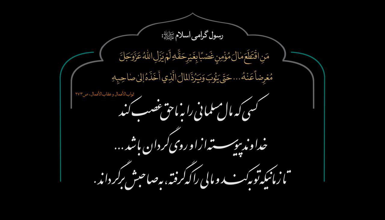 کسی که مال مسلمانی را به ناحق غصب کند، خداوند پیوسته از او روی گردان باشد ... تا زمانی که توبه کند و مالی را که گرفته، به صاحبش برگرداند.