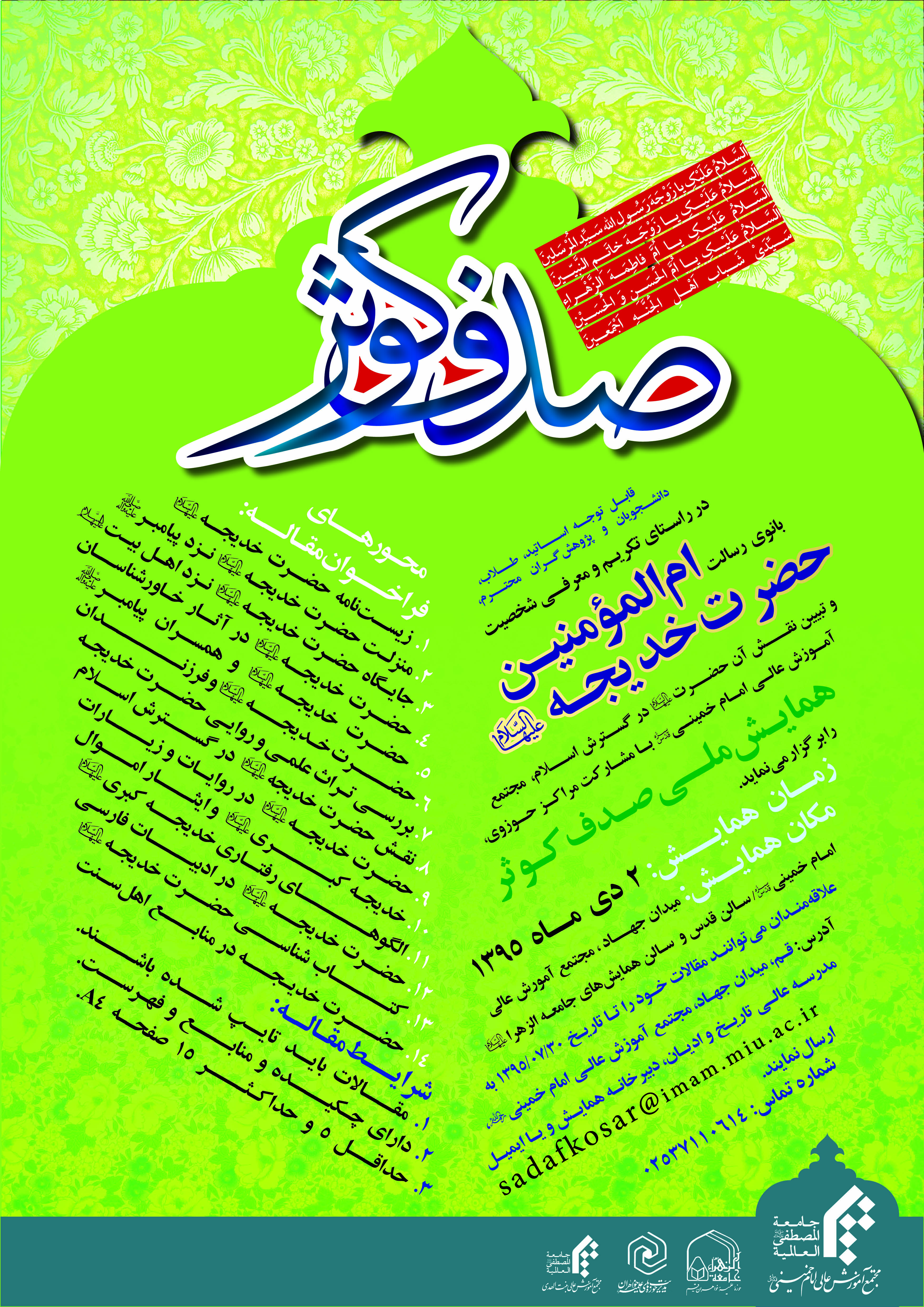 مقالات مرتبط با مقام زن و حضرت خدیجه از جمله بحث اقتصاد مقاومتی وشعب ابی طالب نیز یکی از محورهای فرعی همایش است و مقالهای در این زمینه واصل شود استقبال خواهیم کرد.