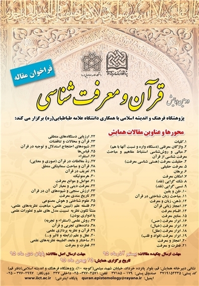 فراخوان مقاله دومین همایش ملی قرآن و معرفتشناسی از سوی گروه معرفتشناسی پژوهشکده حکمت و دینپژوهی پژوهشگاه منتشر شد.
