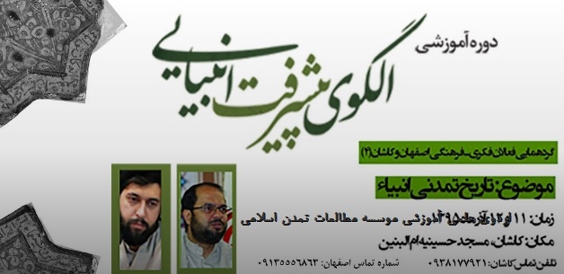گفتنی است، این دوره به همت موسسه مطالعات تمدن اسلامی در کاشان، طی دو روز در تاریخ یازدهم و دوازدهم آذرماه و در مسجد حسینیه ام البنین(س) برگزار می شود.