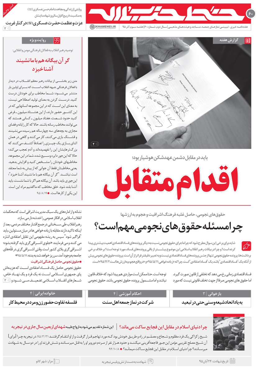 اقدام متقابل، عنوان شصتمین شماره خط حزب الله ( 60 )
