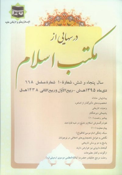 دهمین شماره از پنجاه و ششمین سال انتشار ماهنامه "درس هایی از مکتب اسلام" به صاحب امتیازی: مؤسسه تعلیماتی و تحقیقاتی امام صادق (علیه السلام) در ۷۴ صفحه منتشر شده است.