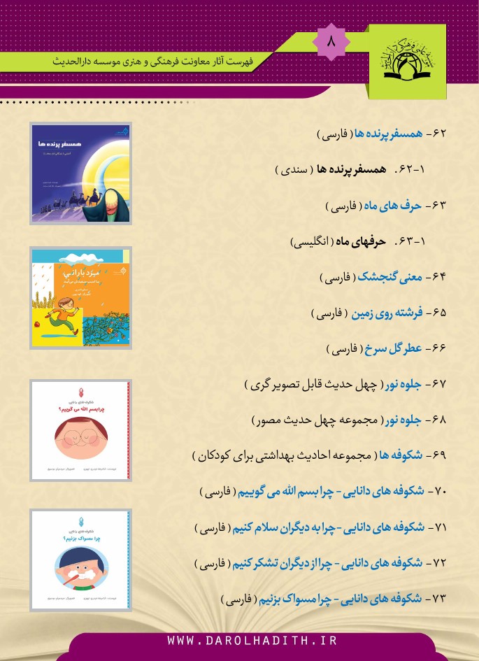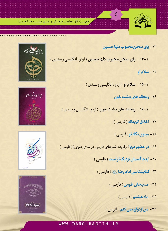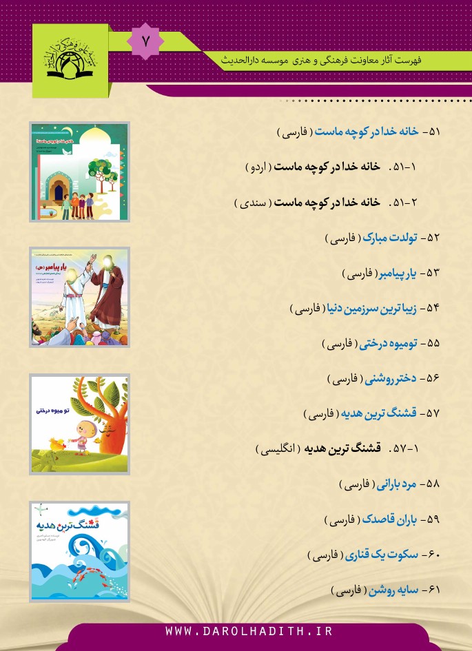 بخش مکتوب: کتابهای نوجوان و بزرگسال،کودک، بخش هنر و رسانه: نرمافزار و کلیپ، تابلوهای فاخر و ...