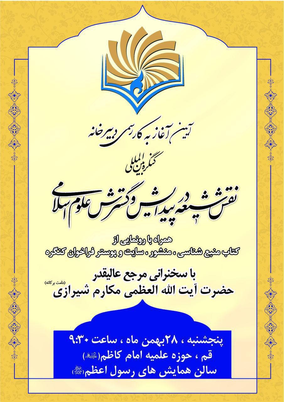 کنگره بینالمللی نقش شیعه در پیدایش و گسترش علوم اسلامی، اردیبهشت ماه سال ۱۳۹۷ در قم و در دارالولایه جمکران برگزار خواهد شد.