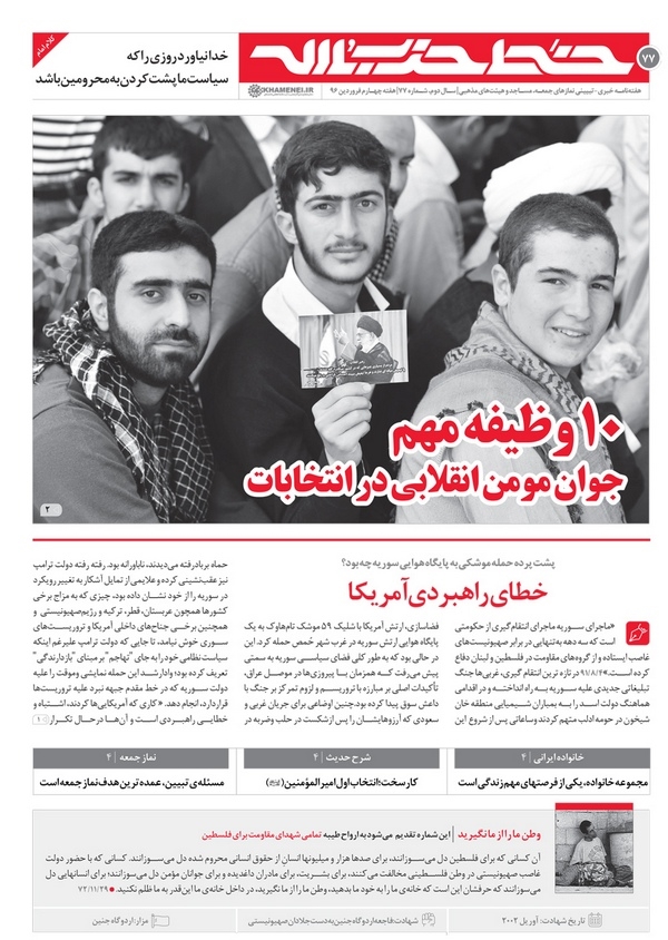 هفتاد و هفتمین شماره خط حزبالله با اشاره به وظایف جوانان مومن انقلابی در انتخابات به ۱۰ وظیفه اصلی آنها در این زمینه اشاره داشته است.