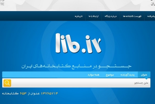 پایگاه اطلاعرسانى کتابخانههای ایران (Lib.ir) با هدف ارائه اطلاعات کتابخانههای ایران در شبکه جهانی اینترنت برای دسترسی سریع محققان، پژوهشگران، دانشجویان و علاقهمندان به کتاب راهاندازی شده است.