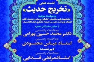 همچنین حجتالاسلام والمسلمین بهرامی، حدیثپژوه حوزه علمیه و عضو انجمن علوم حدیث حوزه نیز در سخنانی گفت: تخریج یعنی استخراج احادیث از مصادر اصلی آن که در اهل سنت ارزیابی را هم به آن اضافه کردهاند .