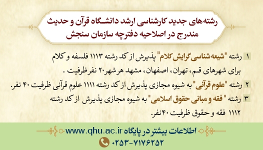 علاقه مند برای اطلاعات بیشتر می توانند به پایگاه اینترنتی دانشگاه قرآن و حدیث به آدرس:www.qhu.ac.irمراجعه و یا با شماره ۰۲۵۳۷۱۷۶۲۵۲ تماس حاصل کنند.