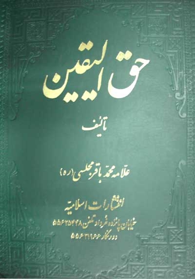 یکی از آثار فارسی علامه محمد باقر مجلسی که بنا به نوشته‌ خاتون‌آبادی، آخرین اثر تألیفی وی هم بوده کتاب حق الیقین است که علامه آن را در شعبان ۱۱۰۹ (قمری) به پایان برده است.