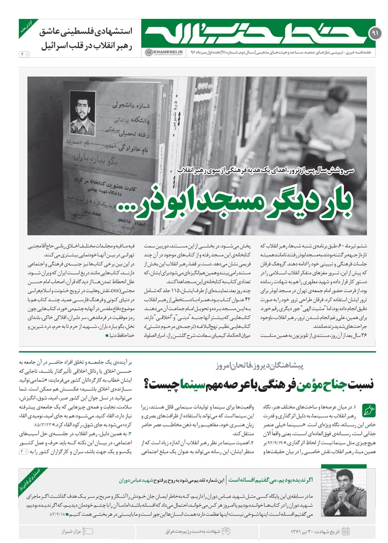 نود و یکمین شمارهی خط حزبالله با سخن هفتهای با عنوان «نسبت جناح مؤمن فرهنگی با عرصه مهم سینما چیست؟» دربارهی اهمیت نقش سینما از منظر رهبر انقلاب منتشر شد.