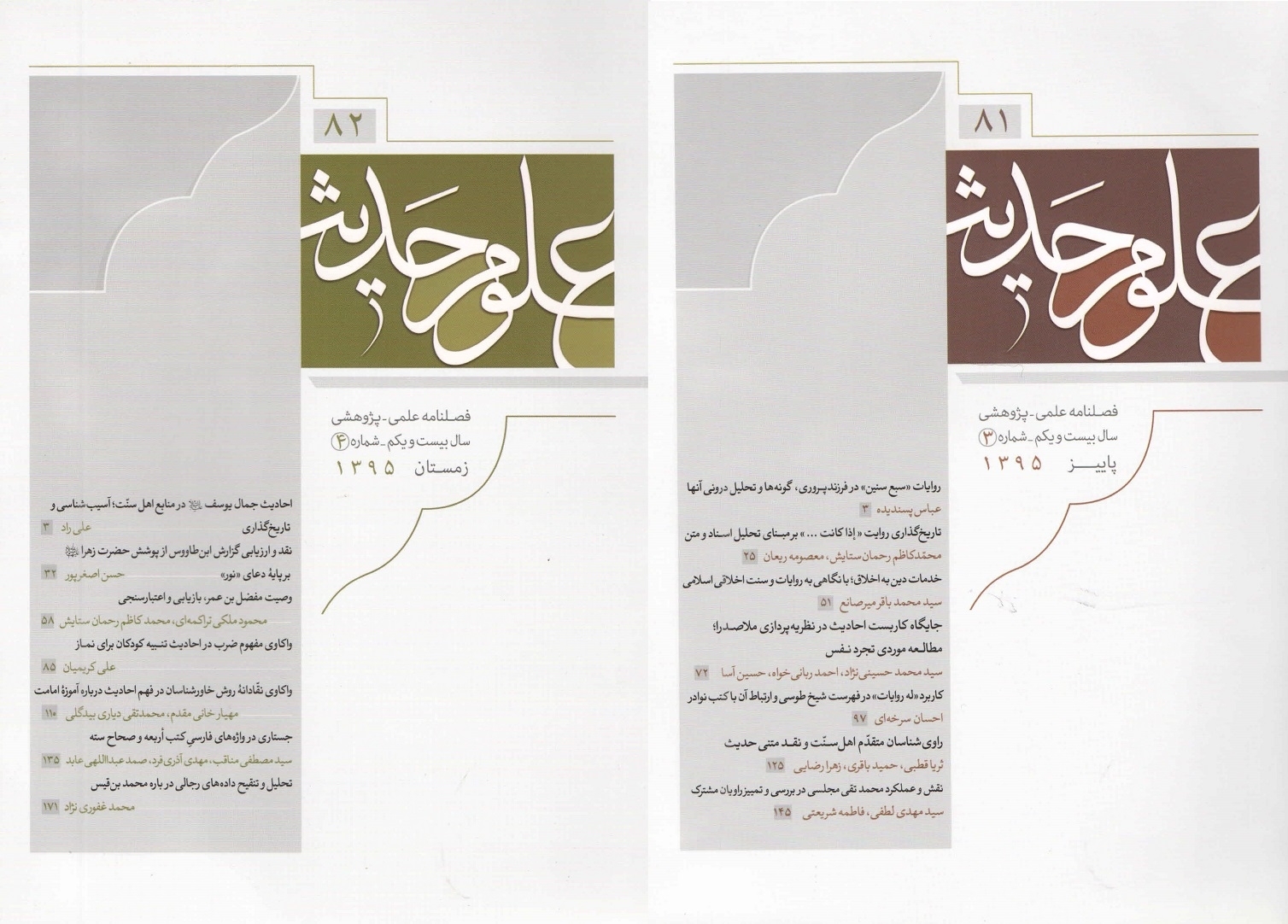 فصلنامه علمی پژوهشی «علوم حدیث» به مدیر مسئولی و سردبیری حضرت آیت الله ری شهری در آخرین شماره خود که به پاییز و زمستان 95 اختصاص دارد، با هفت مقاله حدیثی منتشر شد.