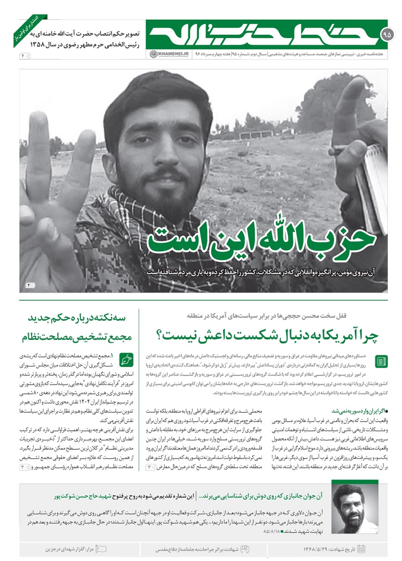 نودوپنجمین شماره خط حزبالله، با مطلبی با عنوان «حزبالله این است» دربارهی شهید محسن حججی، نیروی مؤمن، پرانگیزه و انقلابی که در مشکلات، کشور را حفظ کرده و به یاری مردم شتافته است منتشر شد.