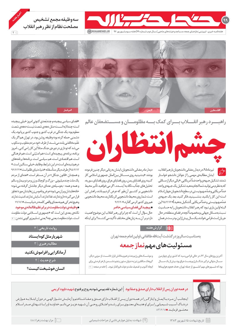 بهمناسبت ۱۹ شهریورماه سالگرد رحلت آیتالله طالقانی گزارش هفتهی این شماره با عنوان «مسئولیتهای مهم نماز جمعه» به اهمیت نماز جمعه و نقش آن در هدایتگری فرهنگی و سیاسی جامعه اختصاص یافته است.