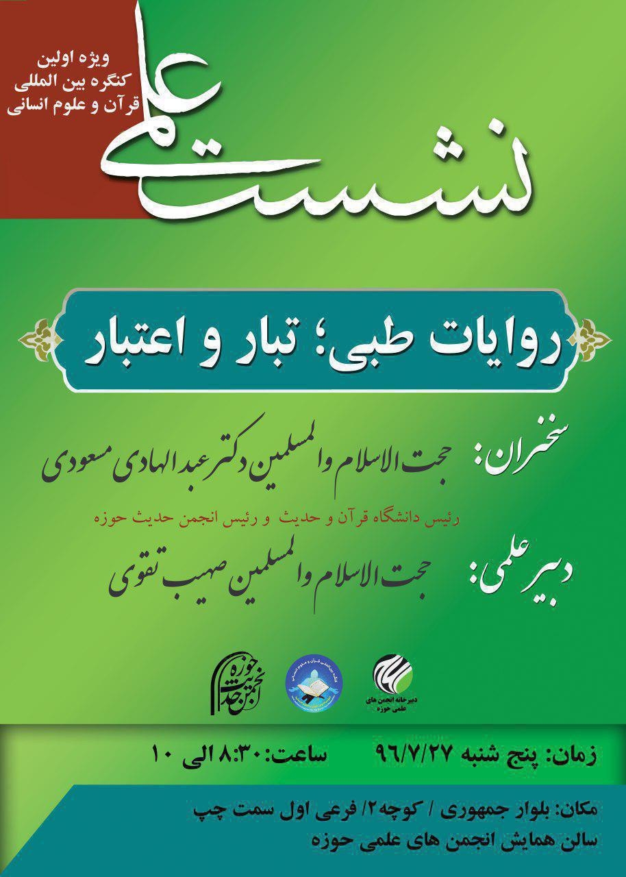 نشست علمی «روایات طبی؛ تبار و اعتبار» از سوی انجمن حدیث حوزه برگزار خواهد شد.