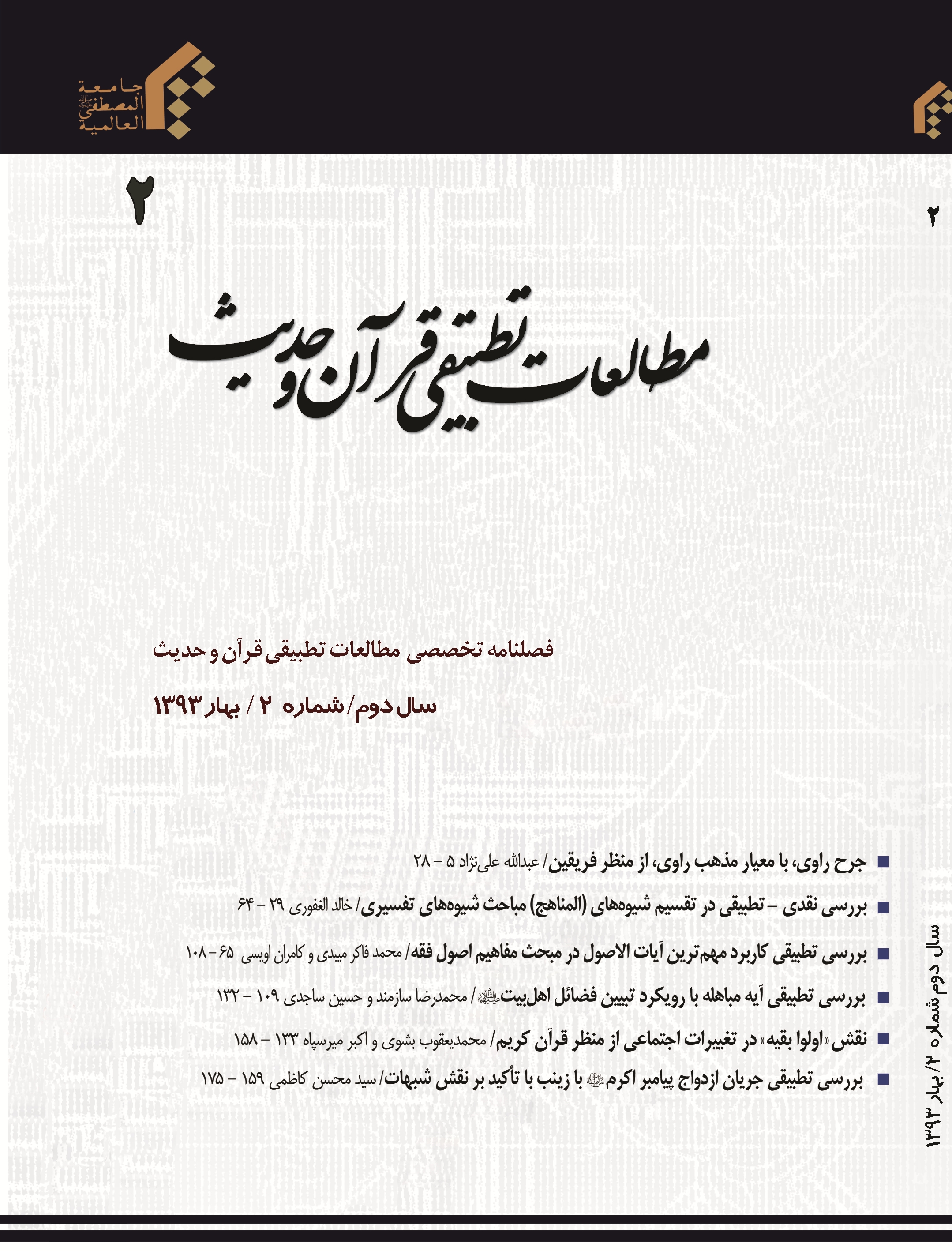 شماره هشتم مجله «مطالعات تطبیقی قرآن و حدیث» به صاحب امتیازی جامع المصطفی العالمیه منتشر شد.