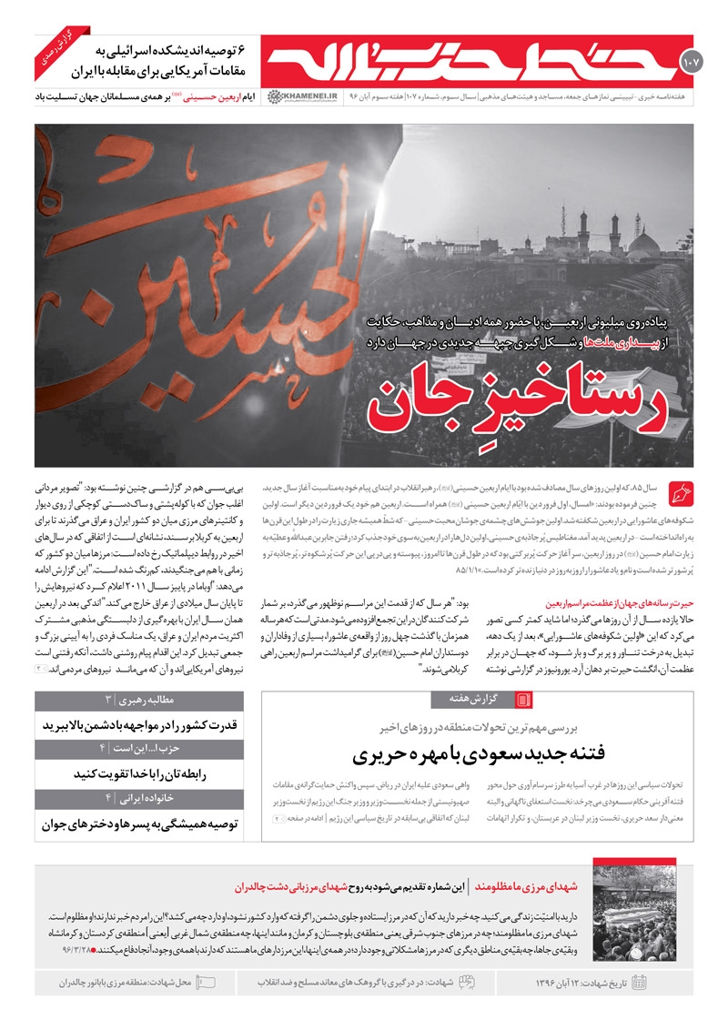 با فرا رسیدن سالروز اربعین حسینی(ع)، نشریه خط حزبالله به شماره ۱۰۷ خود رسید.