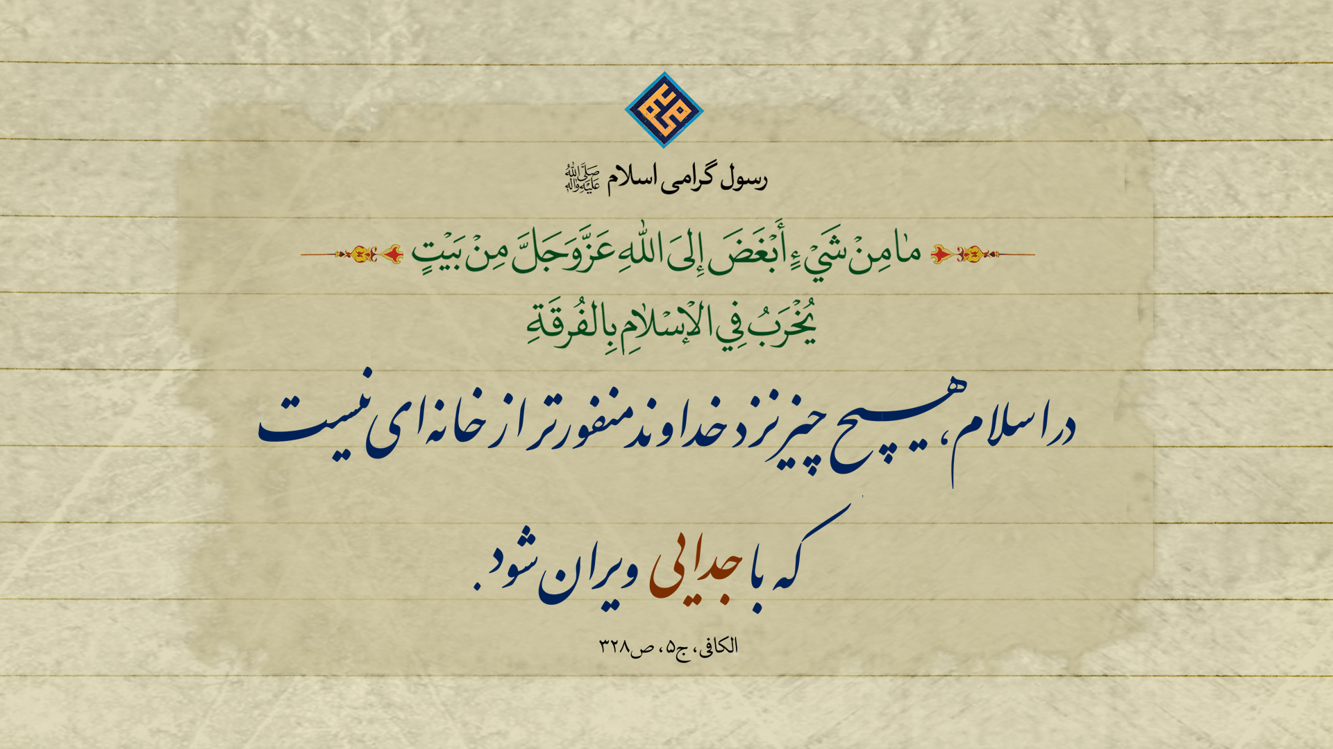 هیچ عملى در اسلام منفورتر، نزد خداوند متعال از این نیست که اساس خانه اى در اسلام با جدائى ویران گردد.